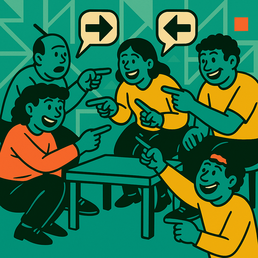 Dags att peka finger! Ett påstående läses upp, och alla pekar på den det bäst beskriver. Ingen som pratar, bara roliga, tysta anklagelser!